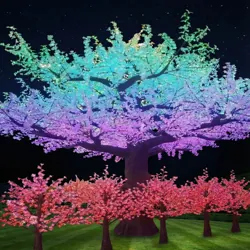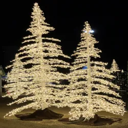 From classic ornament cone trees to frosted spruce silhouettes and color-changing blossom trees, these luminous structures create stunning skyline features and elegant landscape highlights.