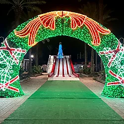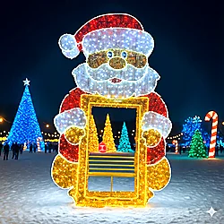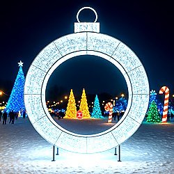 Create immersive, guest-friendly photo moments with oversized walk-through displays such as ornament balls, snowflakes, and illuminated archways. Perfect for entrances, plazas, and high-traffic areas that need an iconic focal point.