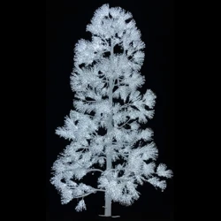 A graceful white-lit fir tree with soft, shimmering branches that create a serene winter glow. Perfect for adding height, elegance, and a frosted woodland feel to any holiday landscape.