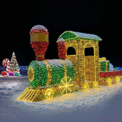 A festive, LED-lit “North Pole Express” train — perfect as a magical centerpiece for winter events and holiday displays. This decorative train can also be customized with functional carriages, letting guests climb aboard for holiday-themed photos and immersive ride-through experiences upon request.